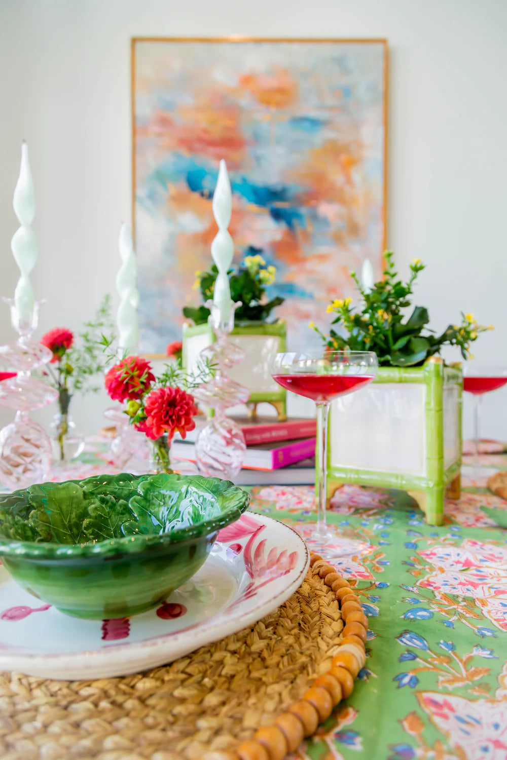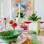 A beautiful ceramic cachepot outlined with a bamboo pattern and a touch of gold.