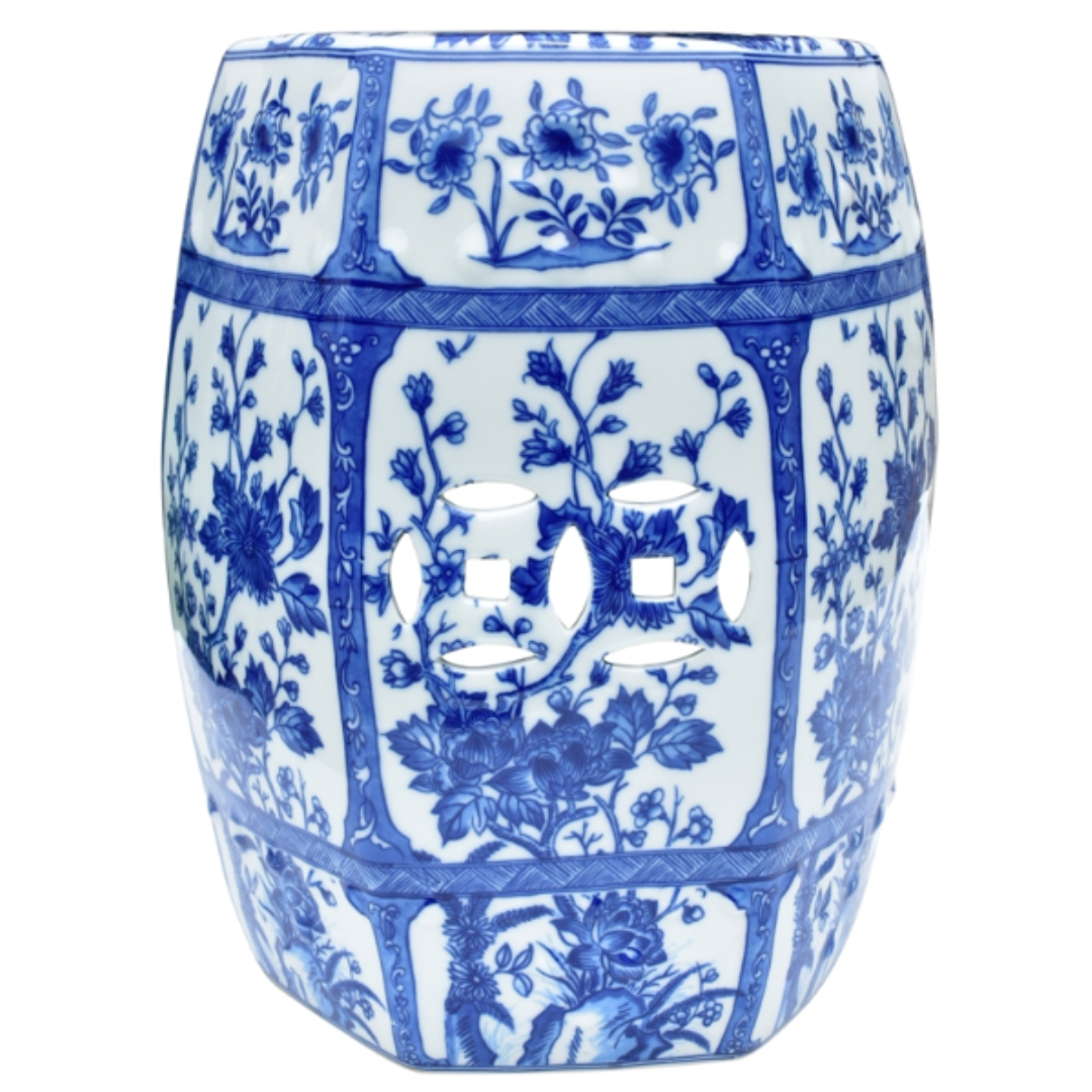 This stunning blue and white garden stool showcases a classic design with delicate motifs, making it an ideal accent piece for any indoor or outdoor space!