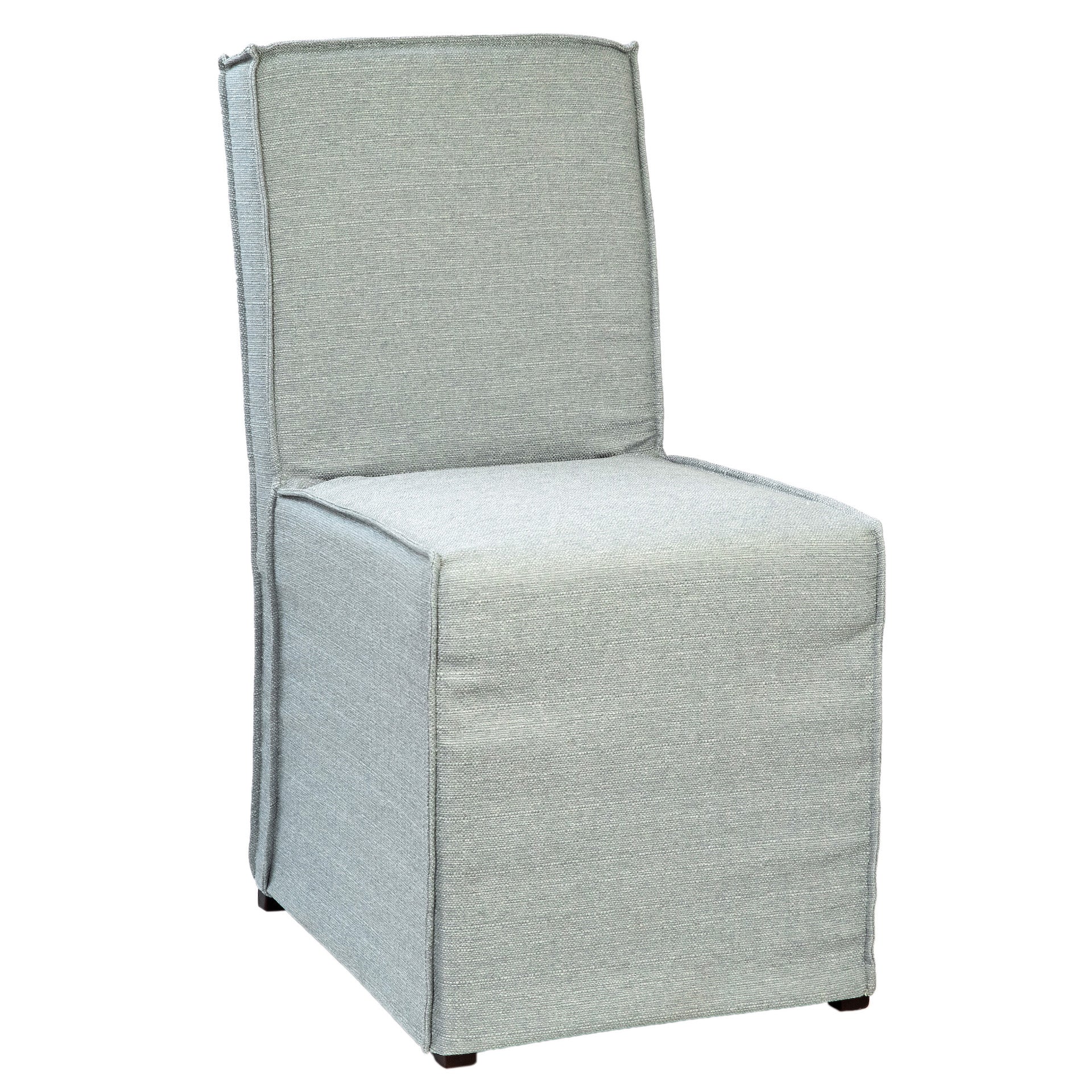 Our Calvin Dining Chair boasts a slip cover style parsons chair upholstered in a warm sage green.