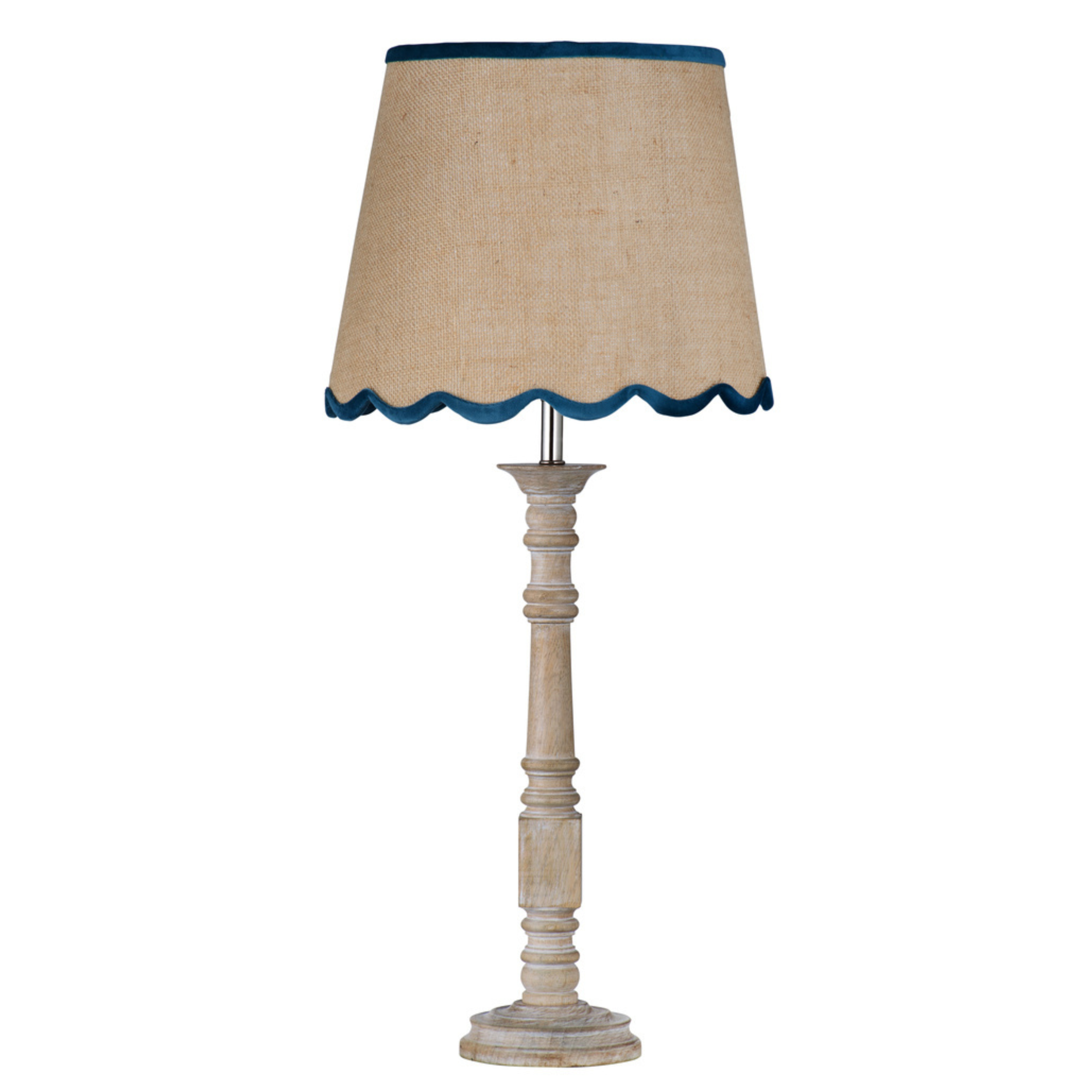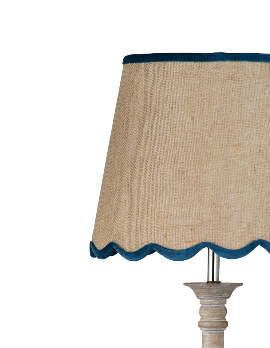 The Carter Table Lamp is crafted of mango wood and features a decorative tapered shade made from natural jute.