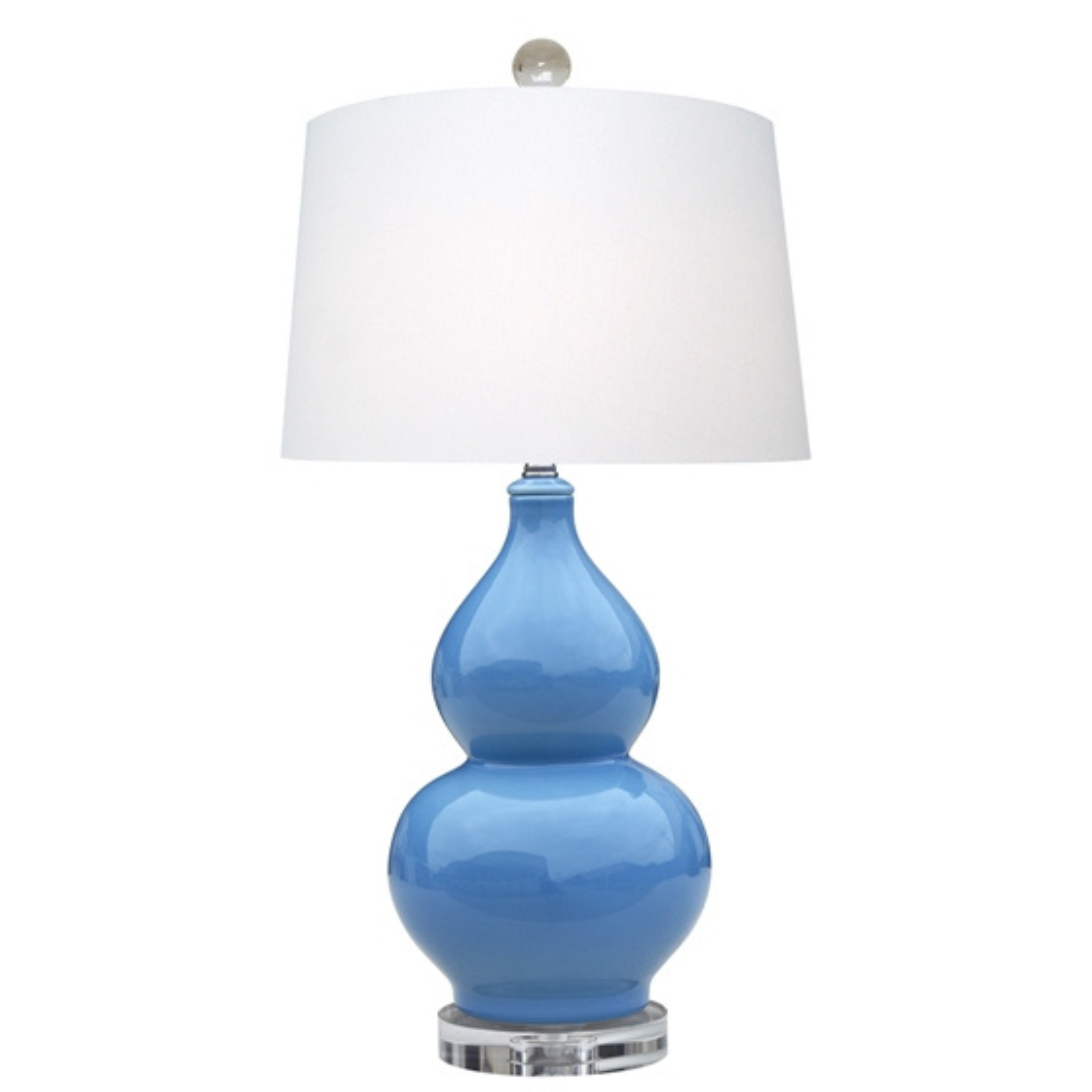 The Cordelia Table Lamp features stunning ivory porcelain with a gourd shape base and a 16in off-white drum shade.