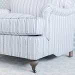 Grab a latte and curl up on this luxurious lounge chair. The Ellie Lounge Chair fills the room with stunning curvature and English designs perfect for any seating area. The English roll arm will forever be a favorite MDI style- its elegance and comfort cannot be beaten. Shown here in London Blues Fabric.
