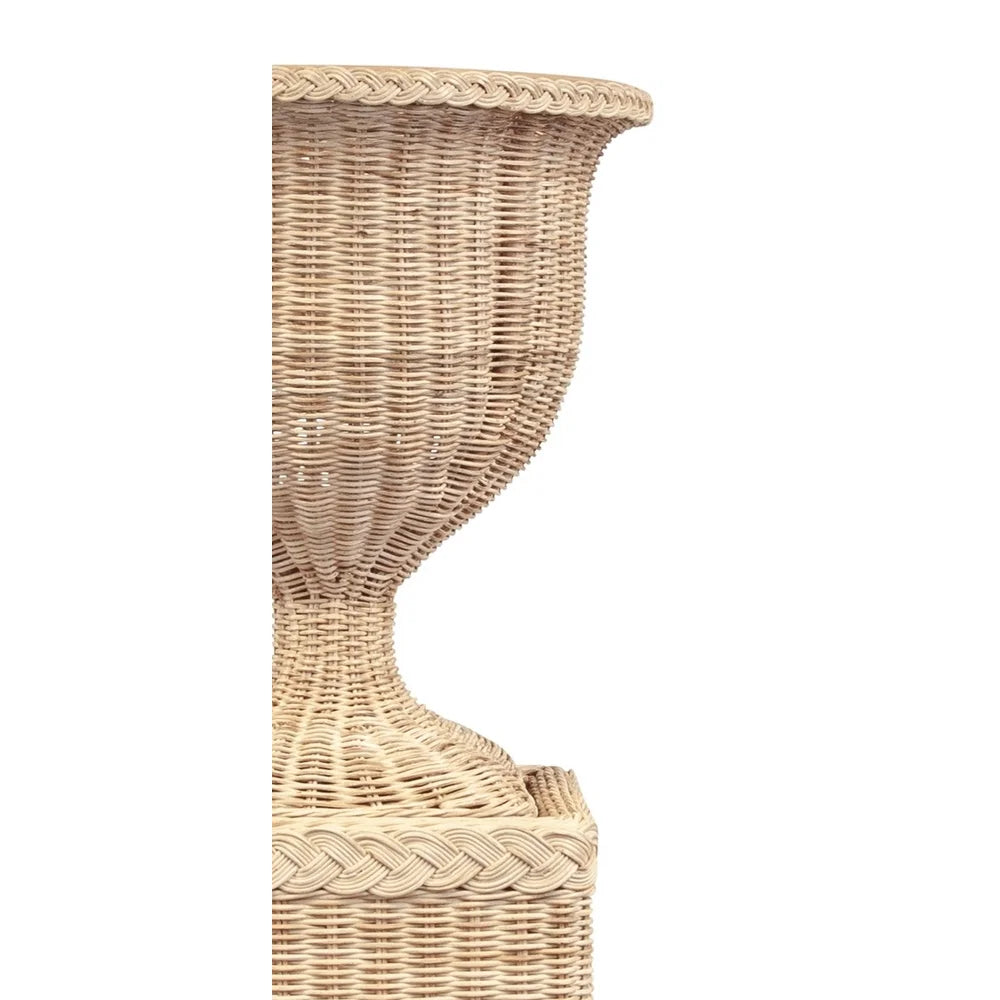 Our braided urn can be used on its own or propped upon its beautiful other half, the James Braided Square Pedestal. Fill it with a fern or your favorite arrangement to fit your mood. We recommend using a liner to protect the rattan.