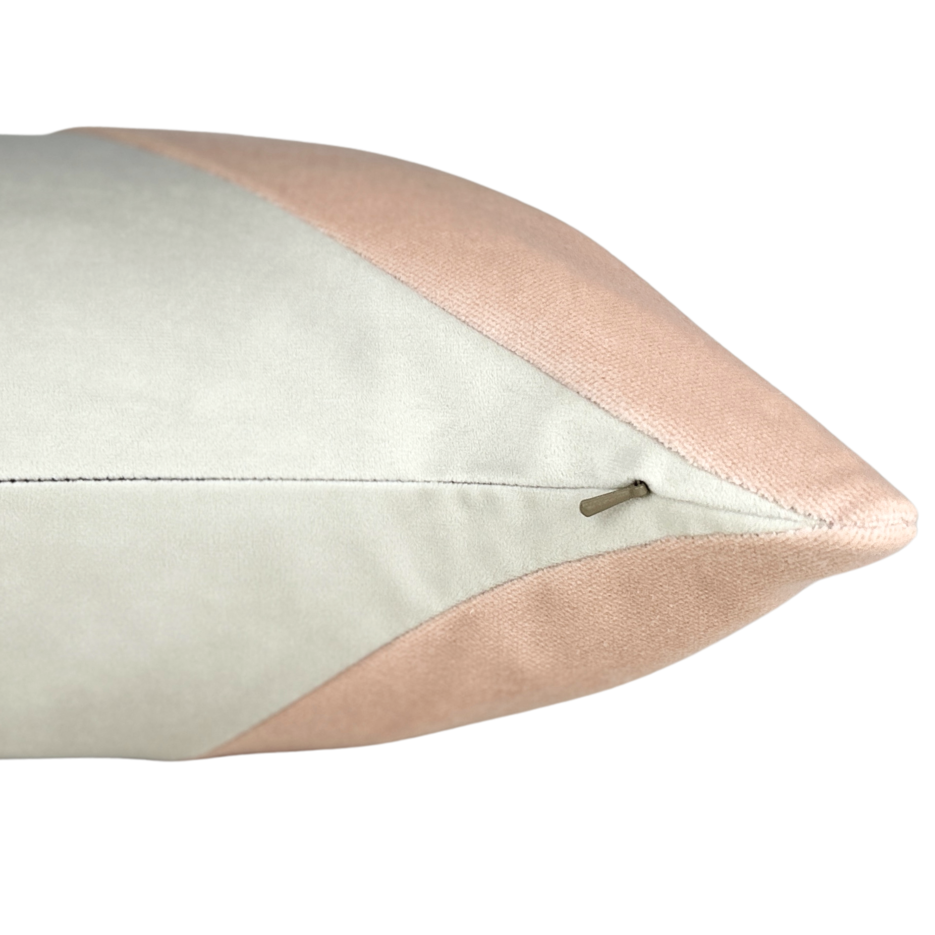 Luscious, luxurious fabrics meet elegant design. In rosewater pink and oyster velvet color-blocking, the Liv pillow will add a touch of opulence to any room. With an identical front and back, this pillow will look good from any angle!