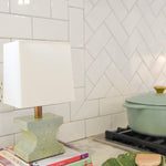 MDI's best seller! Featuring a gorgeous jade or marble stone, this lamp is perfect for a bookshelf, extra light in the kitchen or a desk. Due to the natural characteristics of the stone, color may vary.