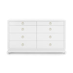 The stately pieces of our Ming Collection radiate worldly sophistication and contemporary class. Handsomely tailored in both form and finishings, the Ming Extra Large 8-Drawer in white boasts an elegant silhouette, soft corners, and thoughtfully-applied details, such as a podium base and delicately curved Chow-style feet.