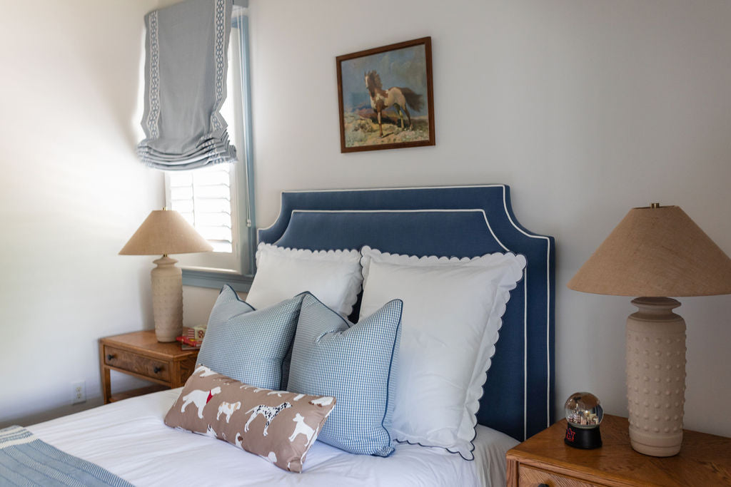 The soft lines and refined curvature of the Monique Headboard make for a peaceful and inviting space for any bedroom.