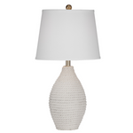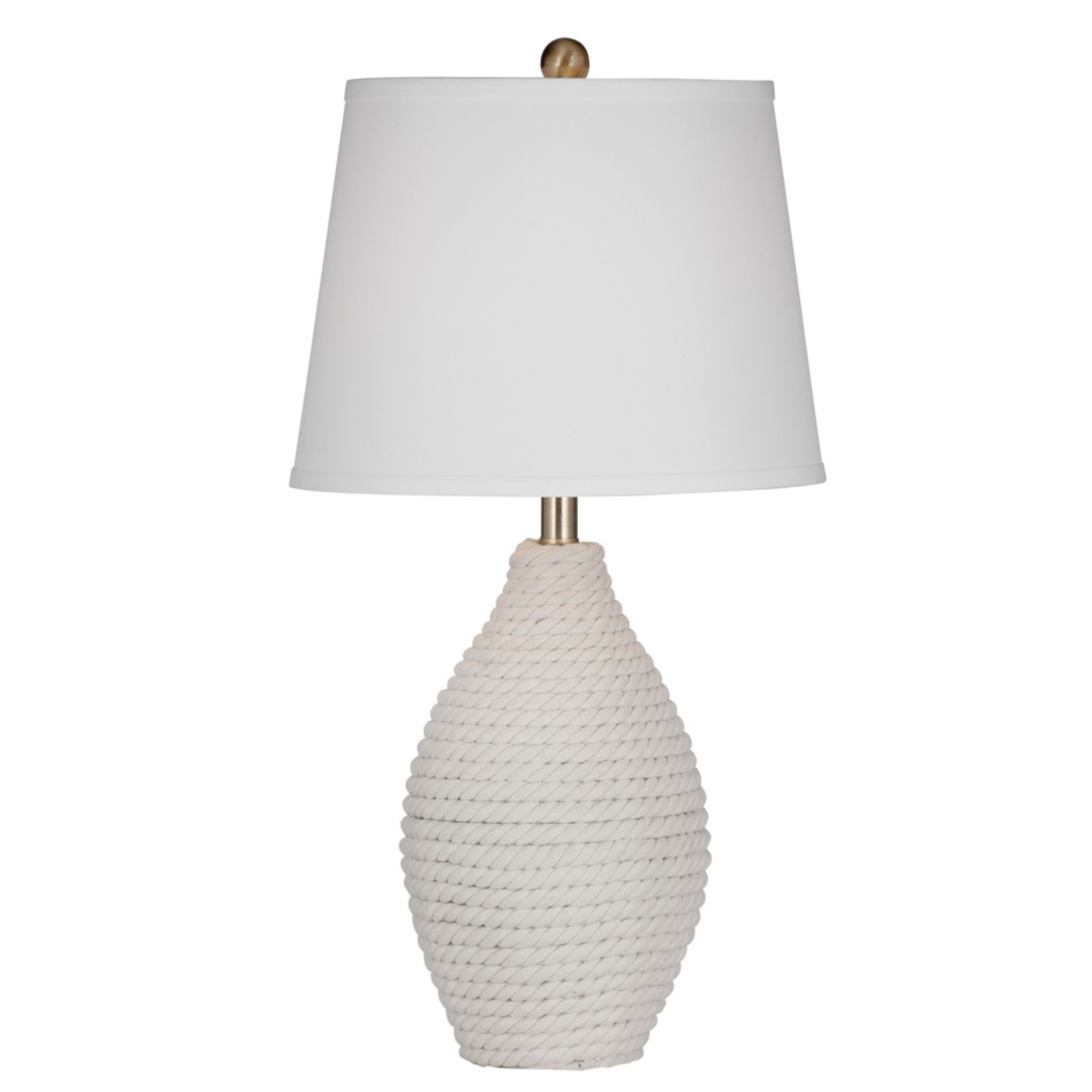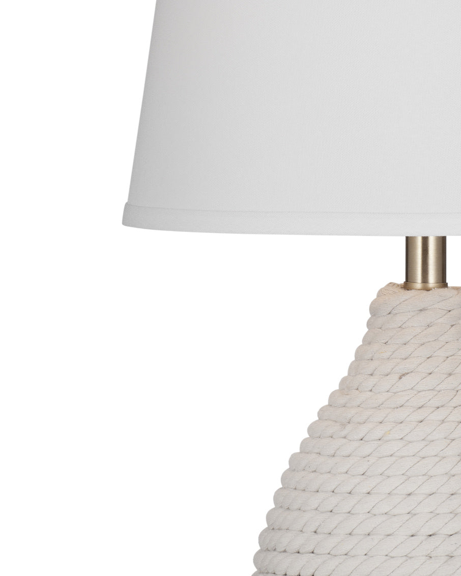 The Nile Table Lamp is crafted of rope with a 14in white tapered shade.