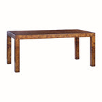 Our Parson Burl Dining Table features a rectangular, smooth top, a hidden drawer in apron, and thick, Parson style legs; Rustic finish on Mappa burl veneer.