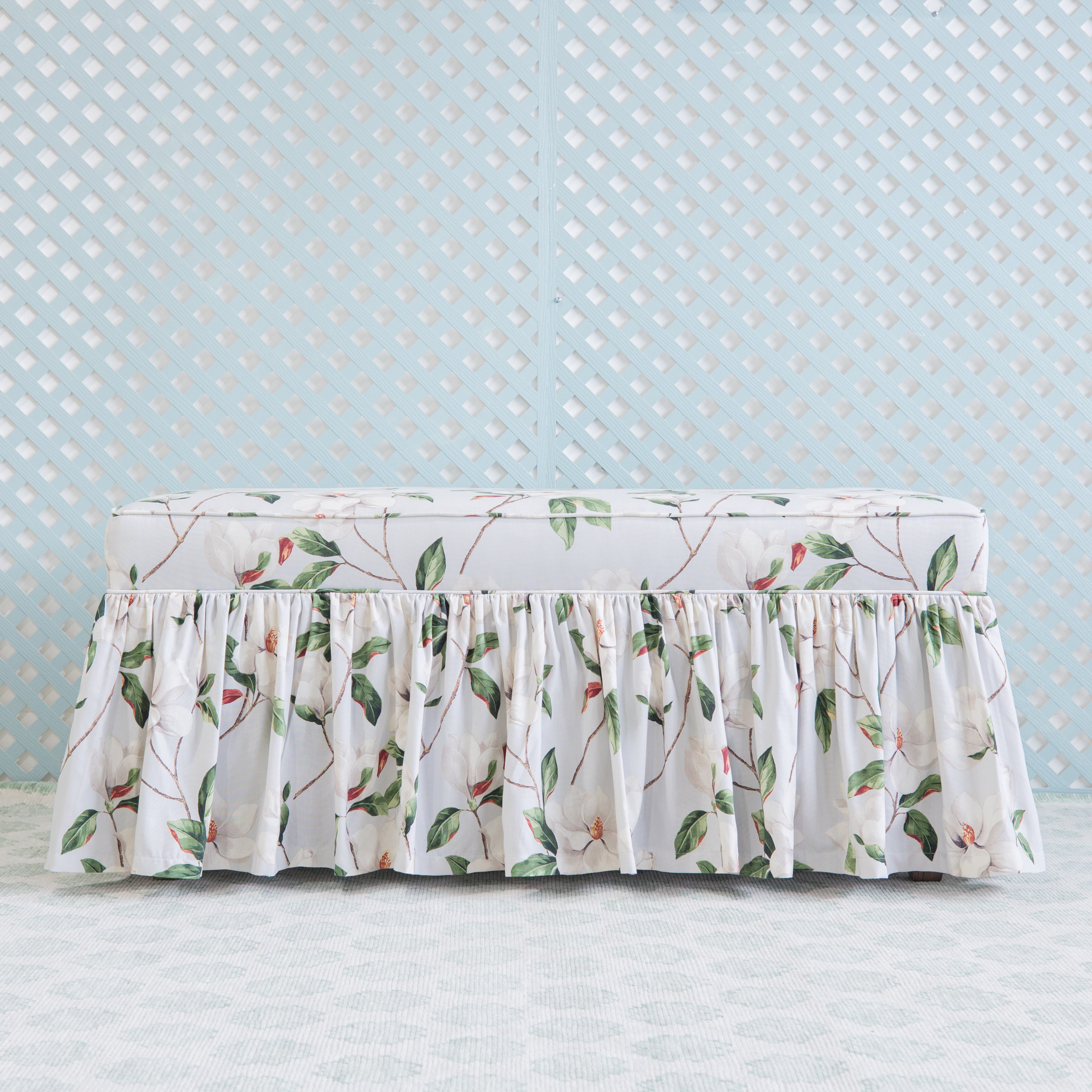 Suited for a bedroom or breakfast nook, the versatile Pippa Bench compliments any space not to mention its ruffle detail! Shown here in Riches Pearl Gray.