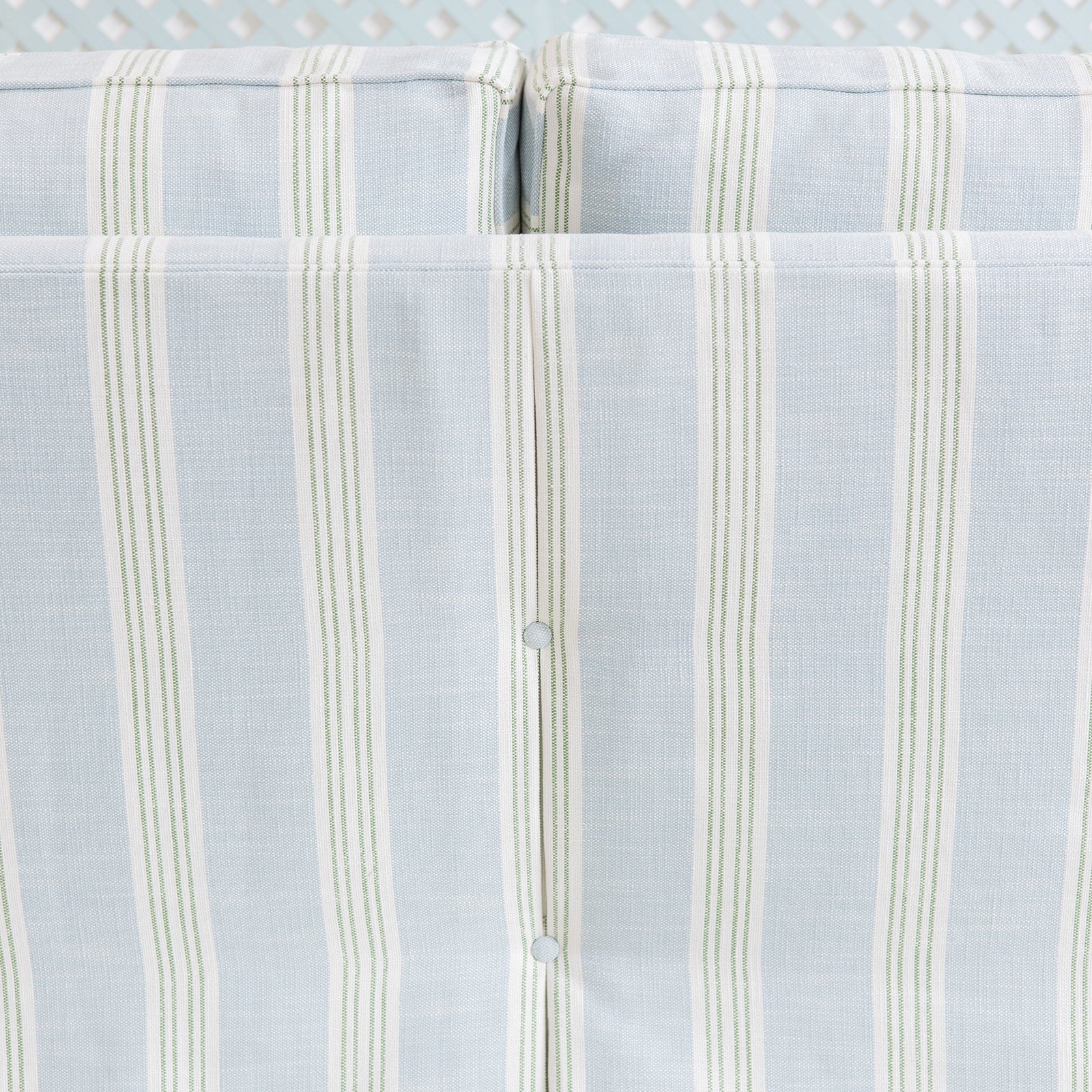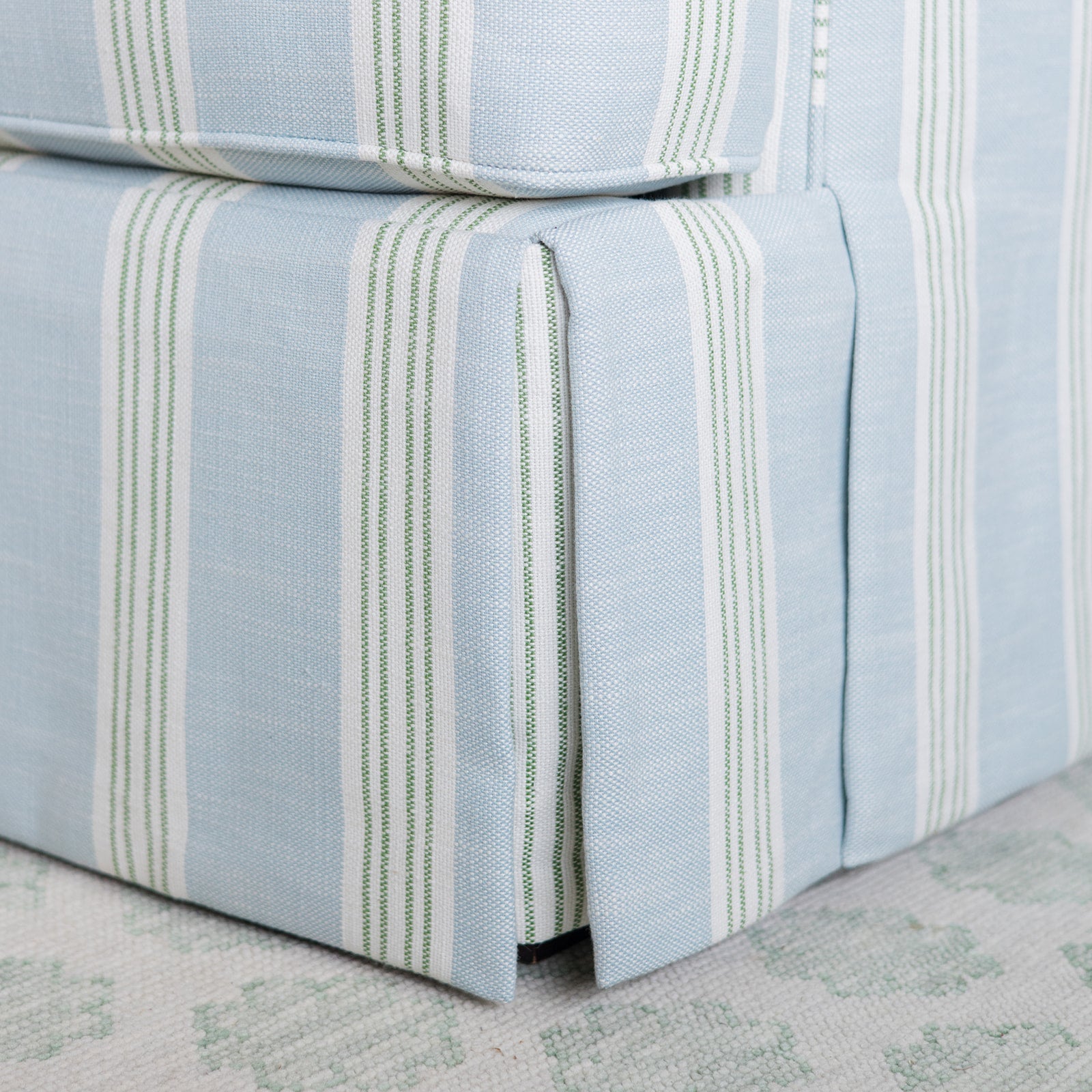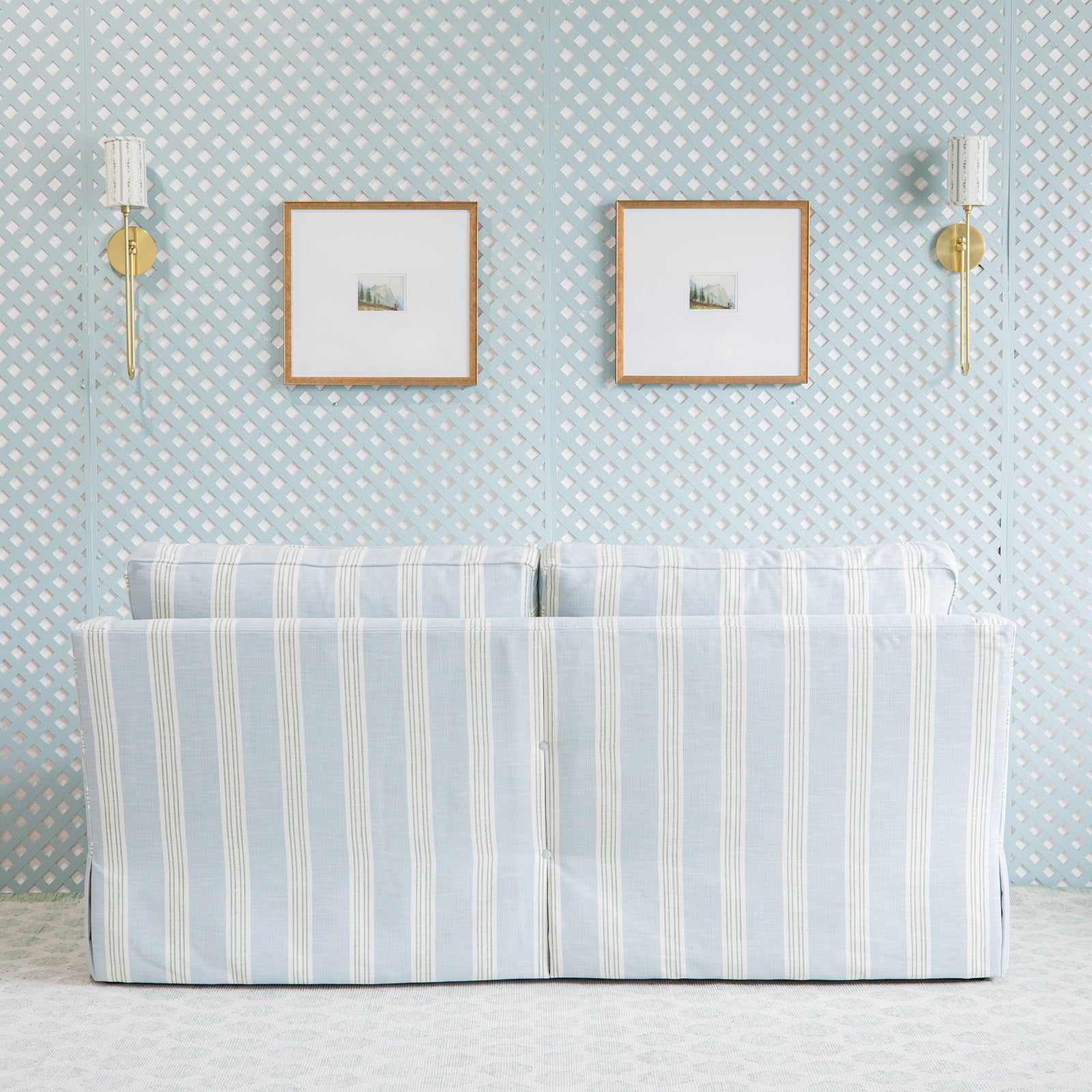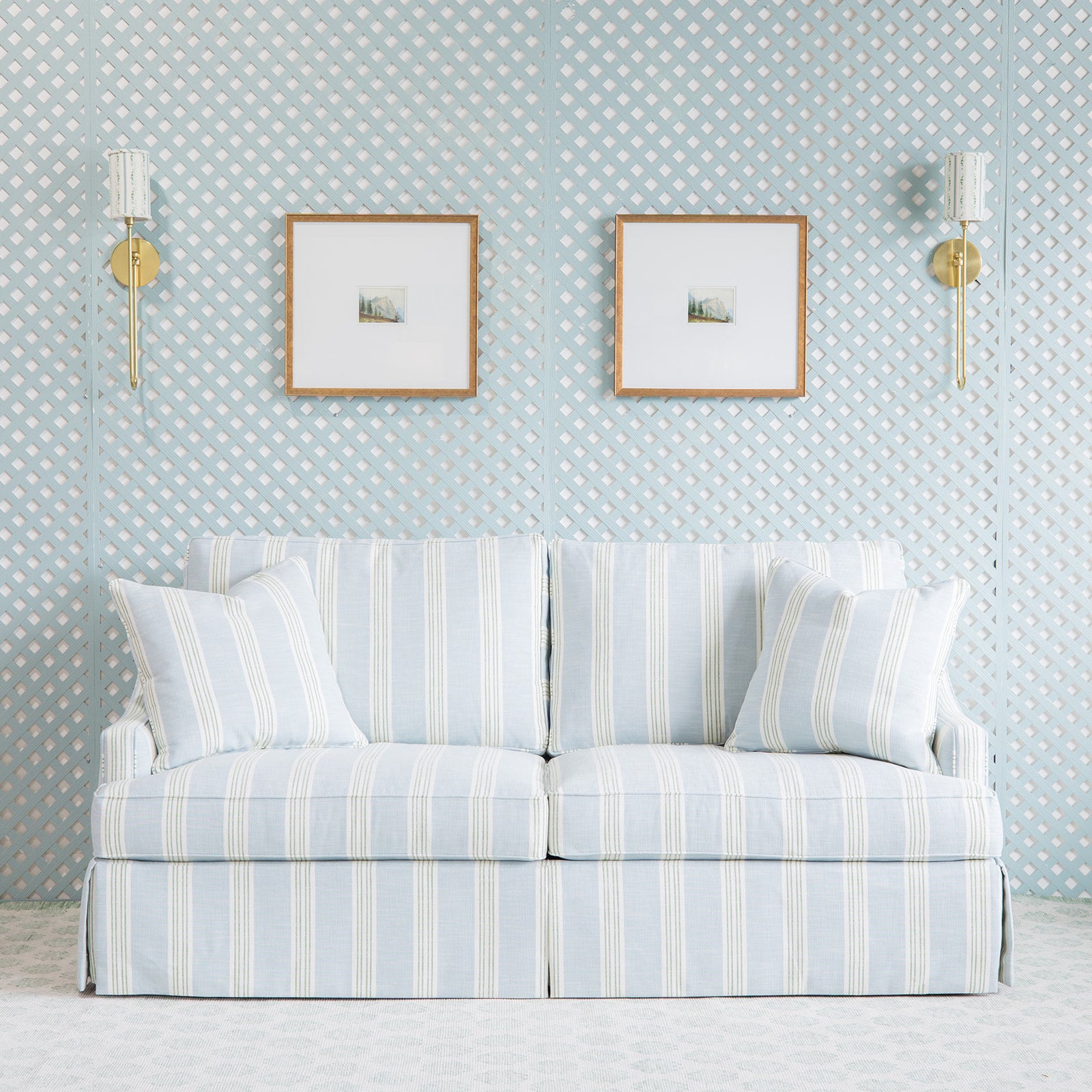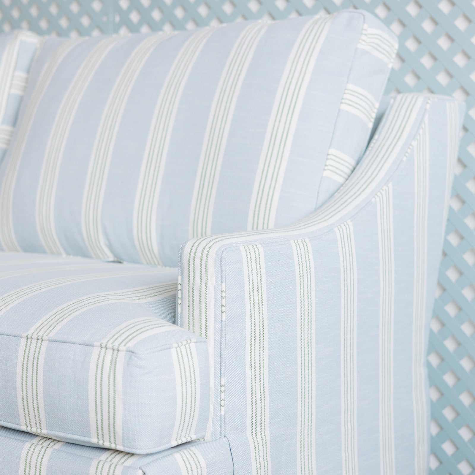 A best-selling sofa with contemporary lines and traditional designs perfect for a family room where tons of memories are made. This is a top pick of our lead designer, Molly. Seen here in 2 over 1 spring down cushion layout - available in 2 over 1. Shown here in Poolside Stripe Performance.